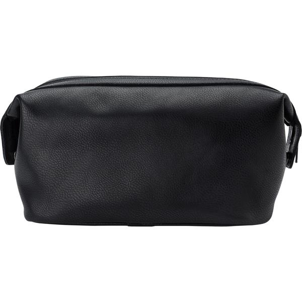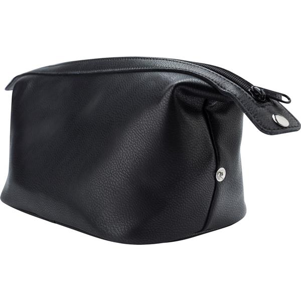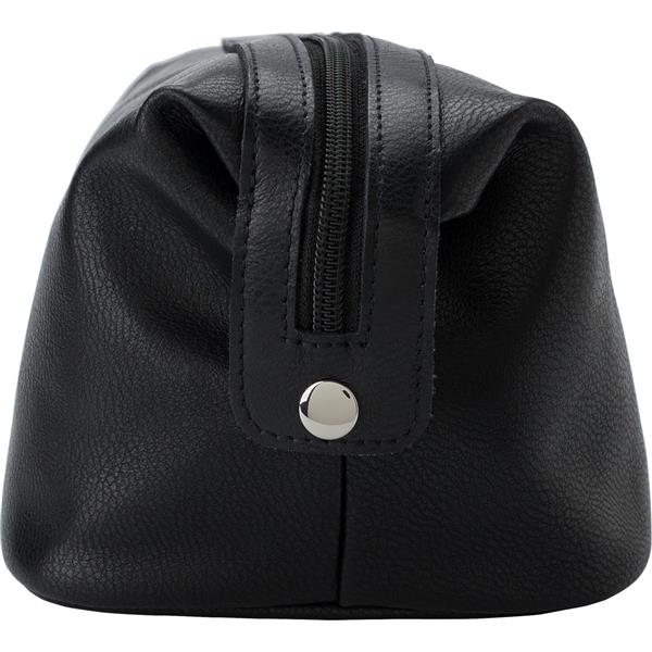 Kosmetyczka, wykonana ze skóry, główna przegroda na zamek błyskawiczny, kieszenie wewnętrzne, 2 guziki po bokach do stabilizowania kosmetyczki