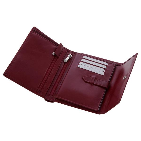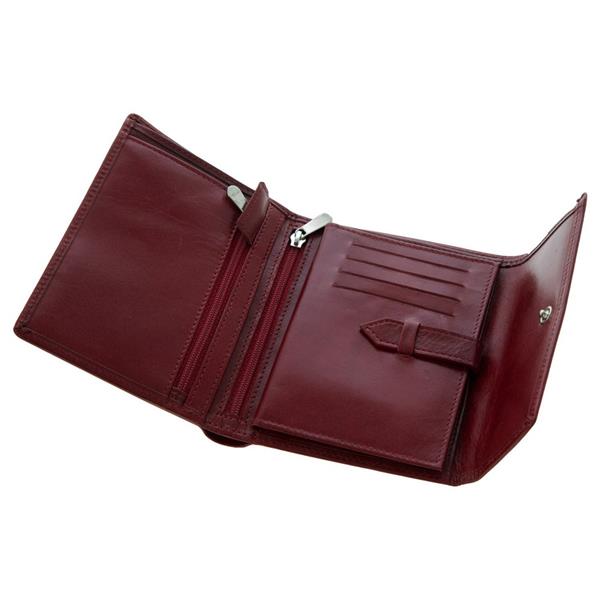 Damski skórzany portfel Mauro Conti ze skóry wysokiej jakości, zapinany na zatrzask, wyposażony w 8 miejsc na karty kredytowe, 2 kieszenie na dokumenty, 1 dużą kieszeń na banknoty, kieszeń zamykaną na zamek, ukryte okienko w klapce zamykanej na zasuwkę, kieszonkę na bilon na zamek