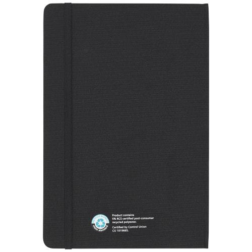 Skribo zestaw z notatnikiem i długopisem jest częściowo wykonany z poużytkowego poliestru pochodzącego z recyklingu, co czyni go bardziej zrównoważonym wyborem, ponieważ pomaga zmniejszyć zużycie pierwotnego surowca. Zawiera długopis z niebieskim tuszem i 80 kremowych kartek w linie z papieru makulaturowego o gramaturze 80 g/m2, pochodzącego ze zrównoważonych źródeł. Długość linii pisania długopisu wynosi 1000 metrów.