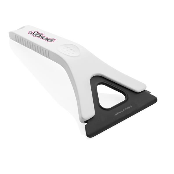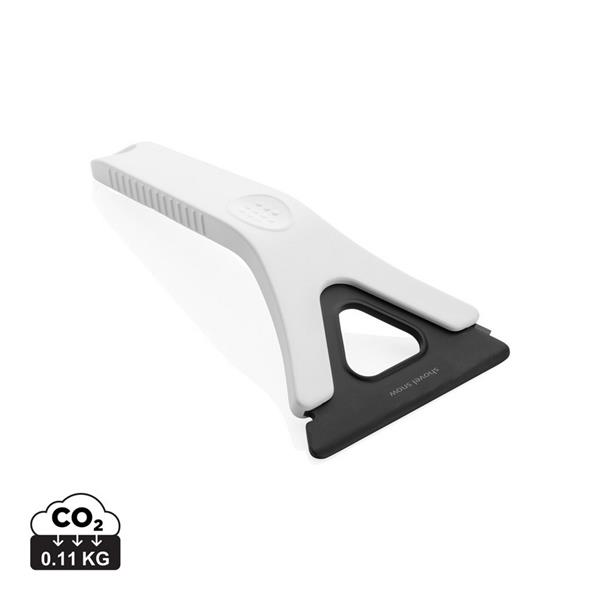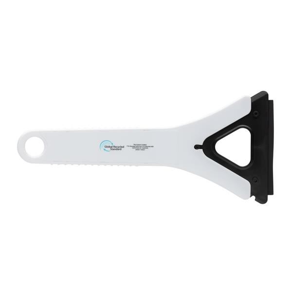 Skrobaczka do szyb 3 w 1, funkcje: skrobanie lodu, odśnieżanie, usuwanie wody, wykonana z materiałów z recyklingu z certyfikatem RCS, całkowita zawartość materiałów z recyklingu obliczona w oparciu o wagę całkowitą przedmiotu: 98%, ślad węglowy produktu: 0,11 kg CO2