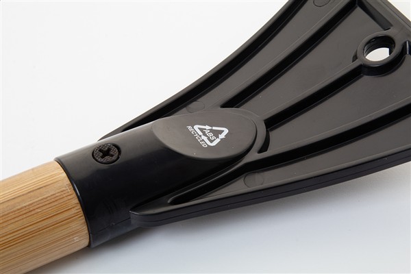 Skrobaczka z tworzywa ABS z recyklingu, ze szczotką i bambusową rączką.