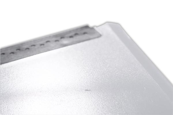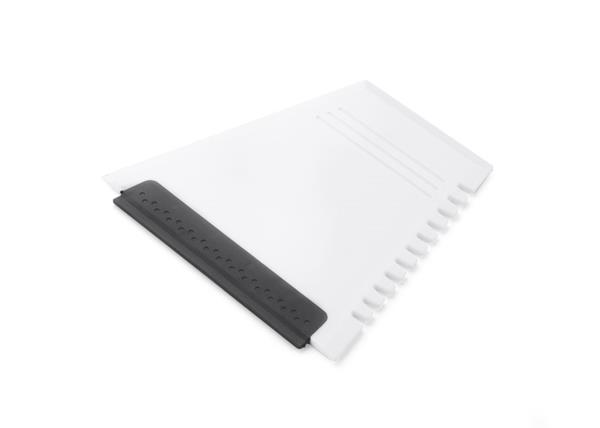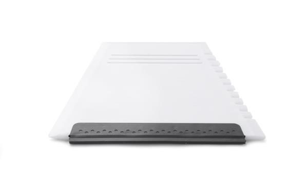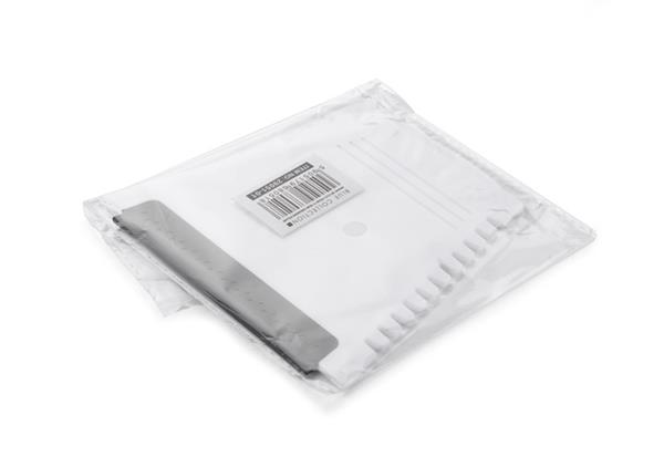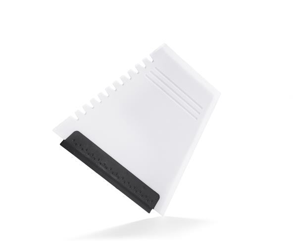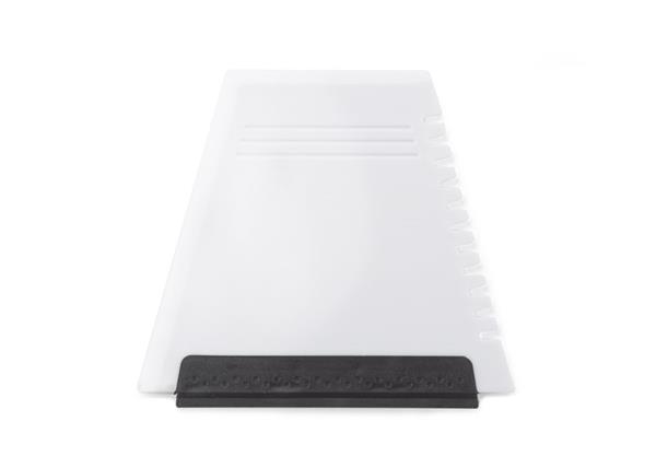 Skrobaczka do szyb z trzema końcówkami – płaską, ząbkowaną oraz gumową. Wykonana z tworzywa nietransparentnego.
