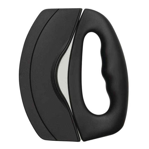 Nóż do pizzy SLICEMASTER. Nóż wykonany jest ze stali nierdzewnej z solidną plastikową rączką. W zestawie jest także osłona ostrza. Zapakowany jest w pudełko.