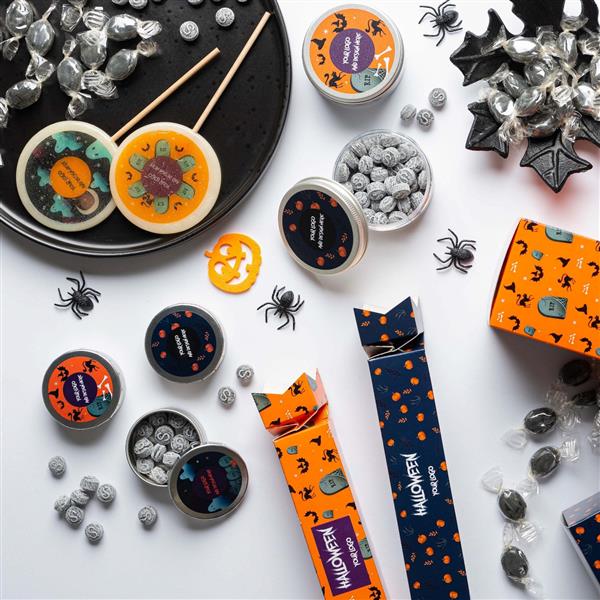 Wykorzystaj okazję, by zaskoczyć klientów niebanalnym, kreatywnym podejściem do słodyczy reklamowych. Na wybranym przez Ciebie projekcie opakowania z halloweenowej kolekcji dodamy logo Twojej marki – dzięki temu wprowadzisz więcej fantazji do komunikacji marketingowej.