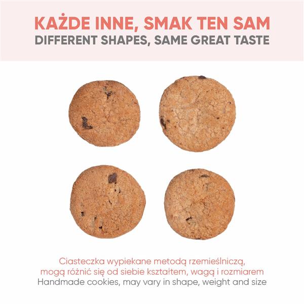 Ciastka mogą się różnić między sobą wagą, kształtem i rozmiarem. Należy również pamiętać, że delikatna struktura ciasteczek sprawia, że w transporcie mogą się pokruszyć, co nie wpływa na ich walory smakowe.