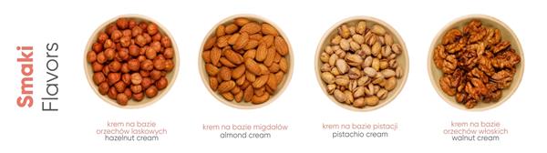 Oferujemy wyborny krem do smarowania tostów, gofrów, bułeczek lub croissantów. Wyróżnia się pełnym, mocno orzechowym smakiem oraz gładką konsystencją. Dzięki czystemu składowi, krem orzechowy z logo spełni oczekiwania nawet najbardziej wymagających smakoszy.