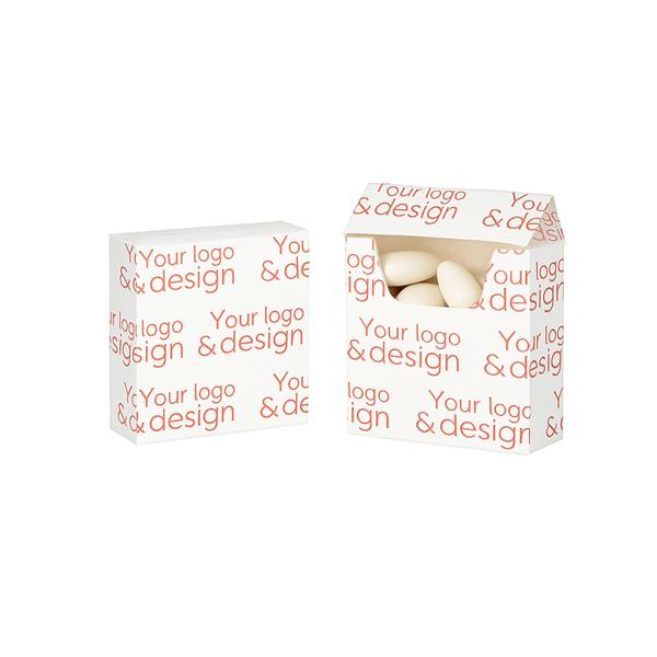Odśwież przekaz reklamowy swojej marki z orzeźwiającymi gumami do żucia. Pudełeczko papierowe o nowoczesnym kształcie z wygodnym otwarciem, które ułatwia częstowanie, możemy wypełnić dla Ciebie owocowymi lub miętowymi drażetkami albo gumami do żucia bez cukru.
