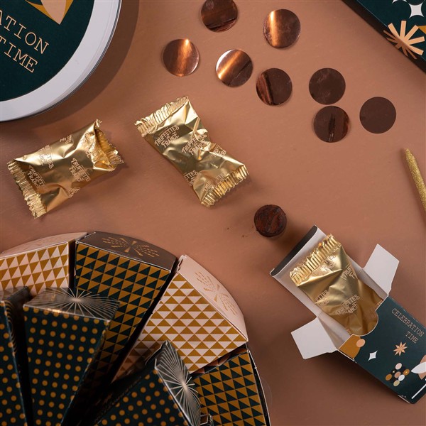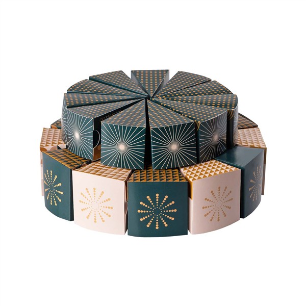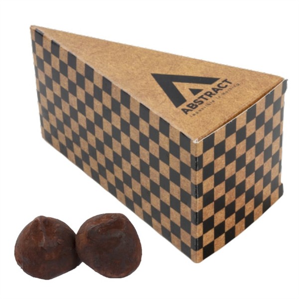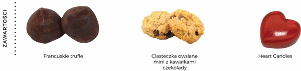 Piece of Cake to nasz kreatywny pomysł na tort. Eleganckie trójkątne opakowanie może być wypełnione do wyboru różnorodnymi smakołykami. Możesz wybierać spośród naszej bogatej oferty, obejmującej m.in. cukierki Heart Candies o smaku wiśniowym, ciasteczka owsiane mini z czekoladą oraz francuskie trufle czekoladowe.