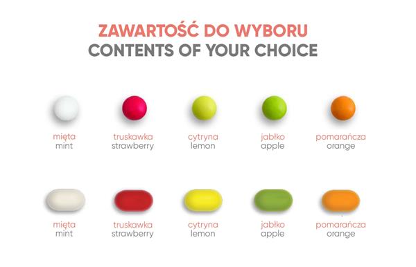 Każdy z rodzajów słodyczy oferujemy w 5 różnych smakach, które można dopasować do indywidualnych preferencji.