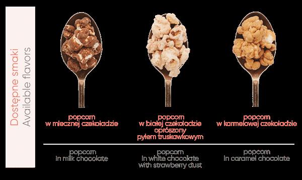 Zaskocz swoich klientów w filmowym stylu! Oto gwiazda wśród naszych nowości – kubełek popcornu. Już samo opakowanie robi duże wrażenie, lecz zapewniamy, że zawartość jest jeszcze bardziej imponująca – aromatyczny, chrupiący popcorn oblany gęstą czekoladą – oryginalny i wyśmienity smak. Do wyboru oferujemy aż 3 warianty: popcorn w czekoladzie mlecznej, popcorn w białej czekoladzie oprószony […]
