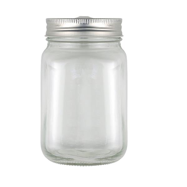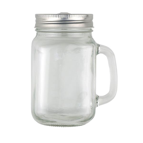 Słoik do picia 480 ml ze słomką, rączką i srebrnym wieczkiem z otworem na słomkę