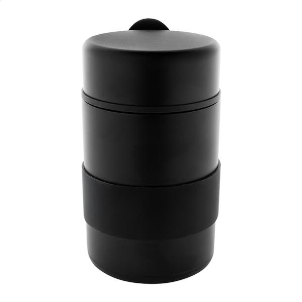 Pojemnik na lunch z podwójną ścianką, izolowany próżniowo, wykonany ze stali nierdzewnej z recyklingu, z silikonowym uchwytem i łyżką PP. Pojemność 450 ml.