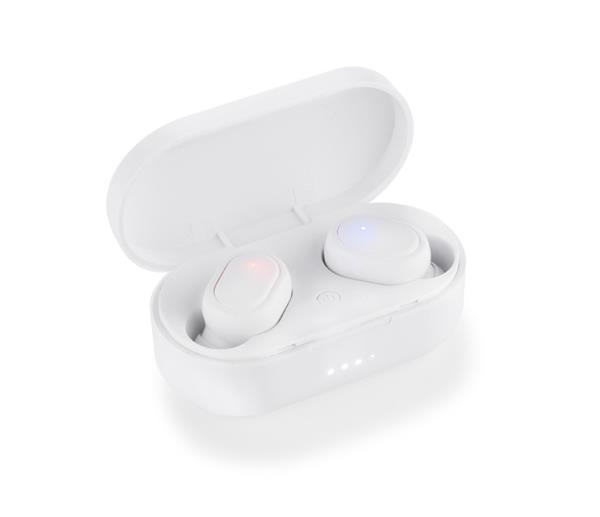 Słuchawki bezprzewodowe SONIDO wyróżniają się swoim kieszonkowym rozmiarem. Charakteryzują się bardzo dobrą jakością dźwięku, są lekkie i wygodne. Wyposażone są w stację dokującą o pojemności 350 mAh, która służy do wygodnego przechowywania oraz ładowania słuchawek. Posiadają wielofunkcyjny przycisk, którym można zatrzymywać i przewijać utwory oraz odbierać/kończyć połączenia. Każda ze słuchawek wyposażona jest w baterię o pojemności 50 mAh, co daje około 3 godz. słuchania ulubionej muzyki. Słuchawki posiadają wbudowany mikrofon, co pozwala na prowadzenie rozmów. Dane techniczne: wersja bluetooth: 5.0+EDR, czas czuwania ok. 500 godzin.