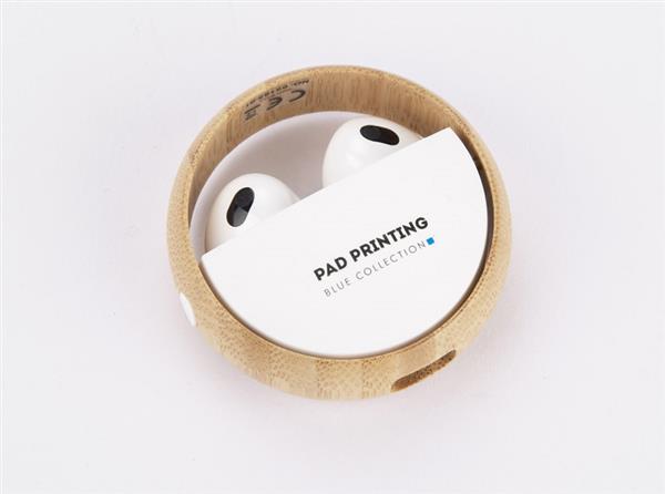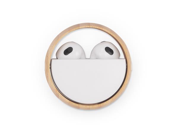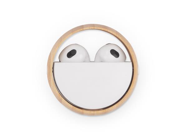 Słuchawki bezprzewodowe SPOTI to stylowy i nowoczesny gadżet. Zapakowane w poręczne okrągłe etui, które poprzez połączenie bieli i bambusa prezentuje się bardzo efektownie. Poręczny, mały rozmiar pozwoli cieszyć się wygodą użytkowania. Dane techniczne: wersja bluetooth 5.0, pojemność baterii w każdej słuchawce 30mAh, pojemność baterii w etui 230 mAh, czas pracy 3-4 godziny, czas ładowania 1-2 godziny, port ładowania typu C.