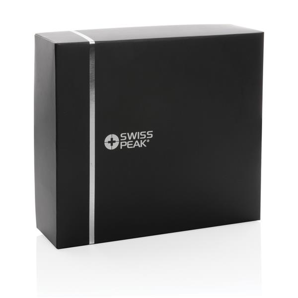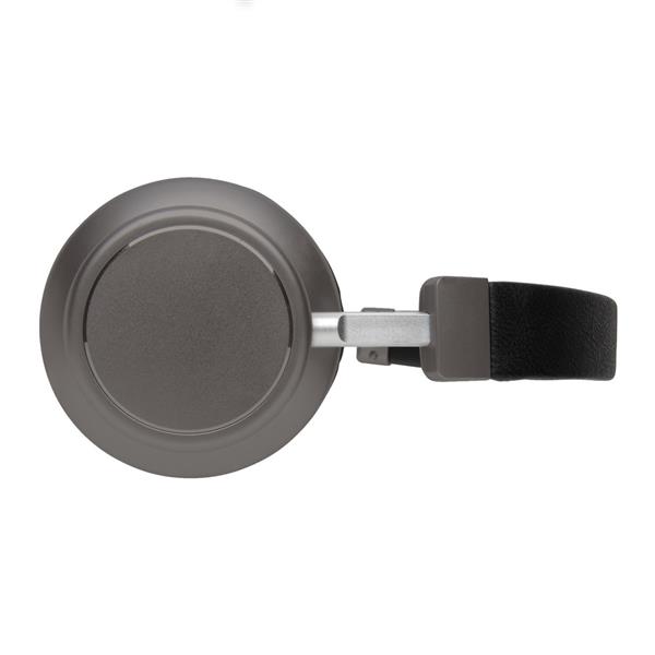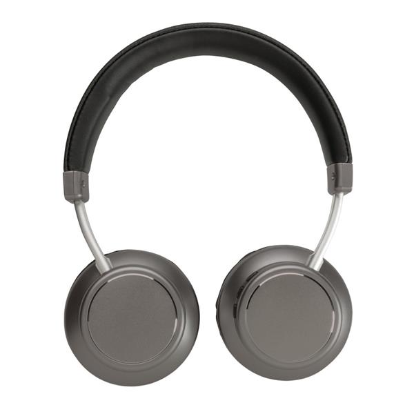 Słuchawki bezprzewodowe, funkcja odbierania połączeń, wbudowany mikrofon, wykonane z aluminium i PU, akumulator o pojemności 300 mAh umożliwia odtwarzanie muzyki do 11 godzin, ponowne ładowanie w 1,5 godziny, składane na płasko, pokrowiec w komplecie, kabel AUX w komplecie, ślad węglowy produktu: 2,19 kg CO2