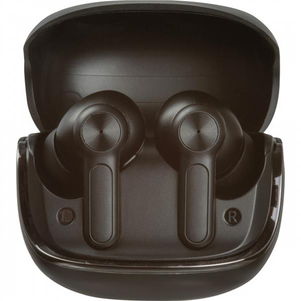 Słuchawki bezprzewodowe (40 mAh) z etui ładującym (500 mAh). Czas grania naładowanych słuchawek wynosi 6h.