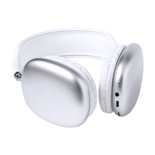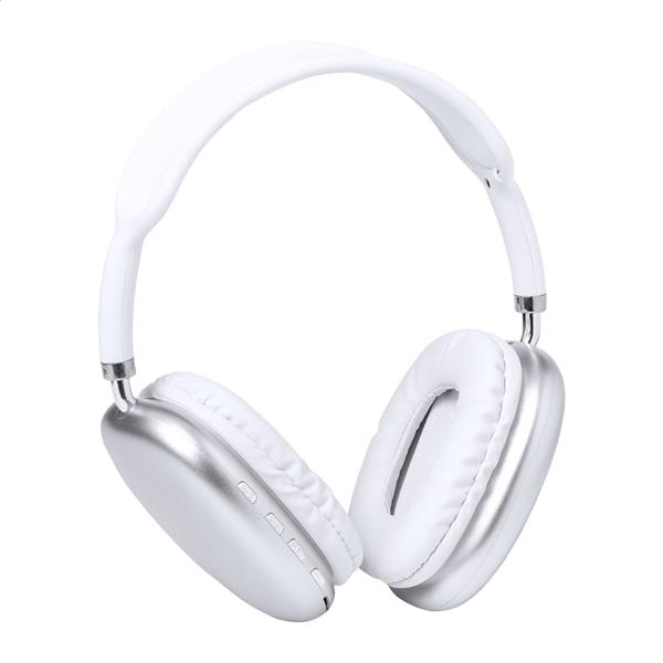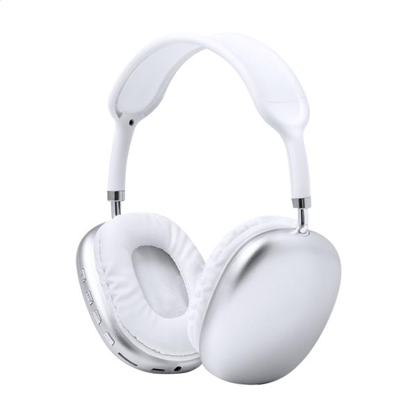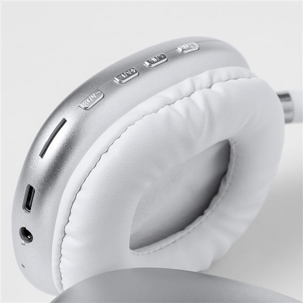 Bezprzewodowe słuchawki z tworzywa ABS z nausznikami ze skóry PU i wbudowanym akumulatorem. Z zestawem głośnomówiącym i funkcją odtwarzania plików MP3 z micro SD. W zestawie kable audio Jack 3,5 mm i ładowarka USB.