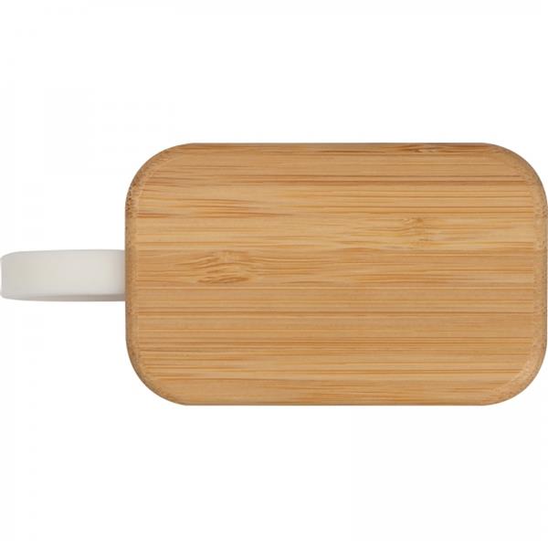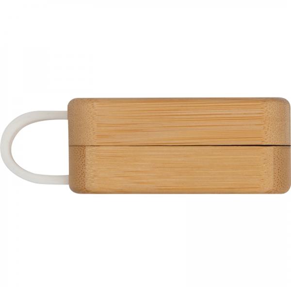 Bezprzewodowe słuchawki douszne z Bluetooth 5.0. Bambusowe etui jest jednocześnie stacją ładującą USB. Zasięg do 10 metrów, czas ładowania ok. 1 godziny, czas pracy 2-3 godziny i bateria 300 mAh.