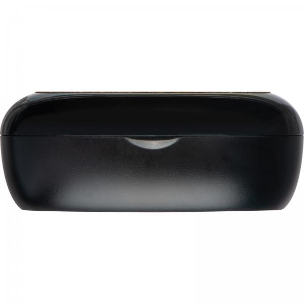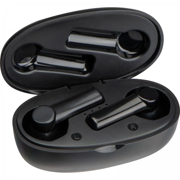 Słuchawki douszne, bezprzewodowe – bluetooth 5.0. Obudowa posiada baterię o mocy 250 mAh, zamykając słuchawki w etui naładujesz je w przeciągu 1h. Długość odtwarzania dźwięku 2-3h, zasięg 10 m.