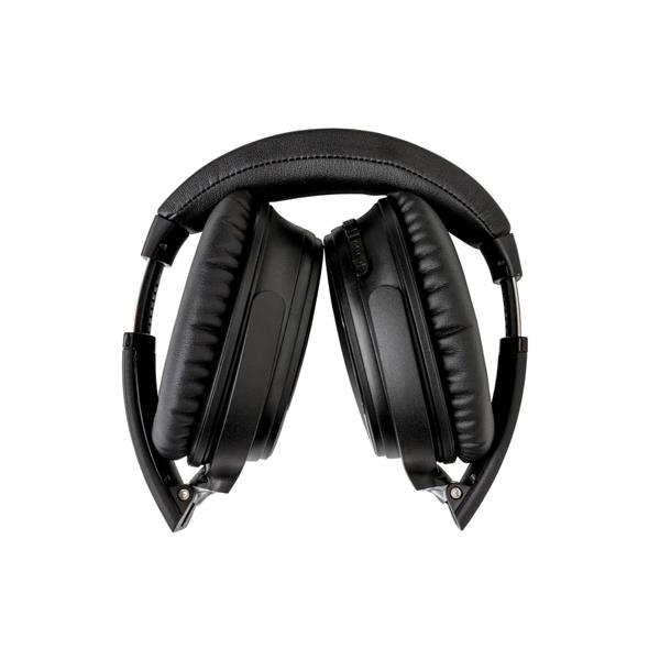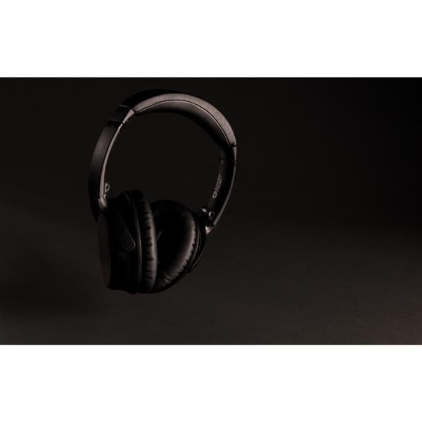 Bezprzewodowe słuchawki nauszne BT 4.2 z systemem ANC (aktywna redukcja szumów) eliminującym dźwięki z otoczenia, funkcja odbierania połączeń, wbudowany mikrofon, wygodne poduszki, wykonane z ABS, w pełni naładowany akumulator 400 mAh umożliwia odtwarzanie muzyki do 14 godzin, ponowne naładowanie w 1,5 godziny, zasięg do 10 m, stopień ANC: 23 dB, etui na zamek błyskawiczny w komplecie, ślad węglowy produktu: 3,17 kg CO2