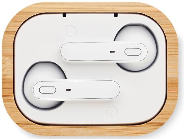 Słuchawki TWS w etui z bambusa