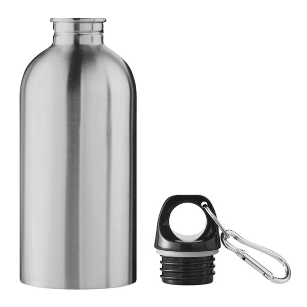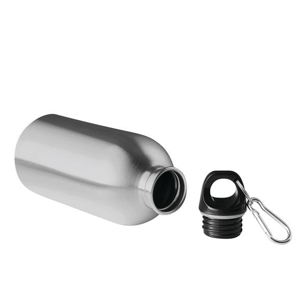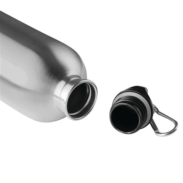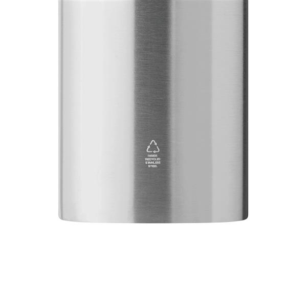 Butelka SMALLTRANSIT z pojedynczą izolacją. Wykonana jest z recyklingowanej stali nierdzewnej. Posiada bezpieczną czarną zakrętkę z tworzywa sztucznego, silikonowy pierścień uszczelniający, uchwyt do przenoszenia, kółko na klucze i karabińczyk (karabińczyk NIE nadaje się do wspinaczki). Ma pojemność ok. 400 ml.
