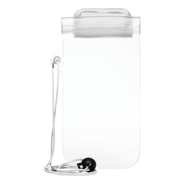 Torebka na telefon SMART SPLASH odporna na zachlapanie. Szroniona z tyłu, transparentna z przodu (umożliwia pracę z ekranem dotykowym), z zamknięciem strunowym i na rzep oraz sznurkiem (długość ok. 45 cm) i regulowanym plastikowym stoperem.