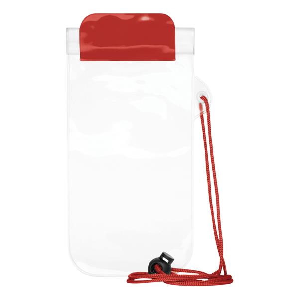 Torebka na telefon SMART SPLASH odporna na zachlapanie. Szroniona z tyłu, transparentna z przodu (umożliwia pracę z ekranem dotykowym), z zamknięciem strunowym i na rzep oraz sznurkiem (długość ok. 45 cm) i regulowanym plastikowym stoperem.