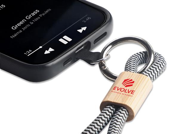 Ozdobny detal wykonany z naturalnego drewna bambusowego Pakowane pojedynczo w woreczek foliowy Specjalna wkładka do telefonów, nie wymaga klejenia ani stałego montażu Wygodny uchwyt na nadgarstek typu „hands-free” Wytrzymały, pleciony sznurek poliestrowy o grubości 7mm Materiał: Poliester Kolor: czarny