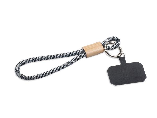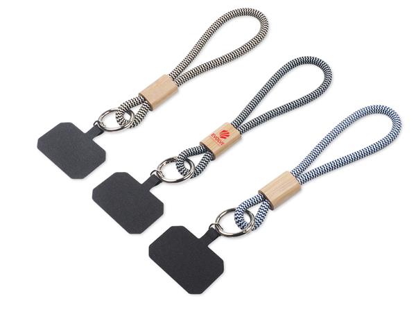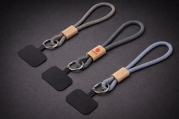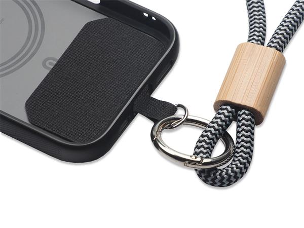 Ozdobny detal wykonany z naturalnego drewna bambusowego Pakowane pojedynczo w woreczek foliowy Specjalna wkładka do telefonów, nie wymaga klejenia ani stałego montażu Wygodny uchwyt na nadgarstek typu „hands-free” Wytrzymały, pleciony sznurek poliestrowy o grubości 7mm