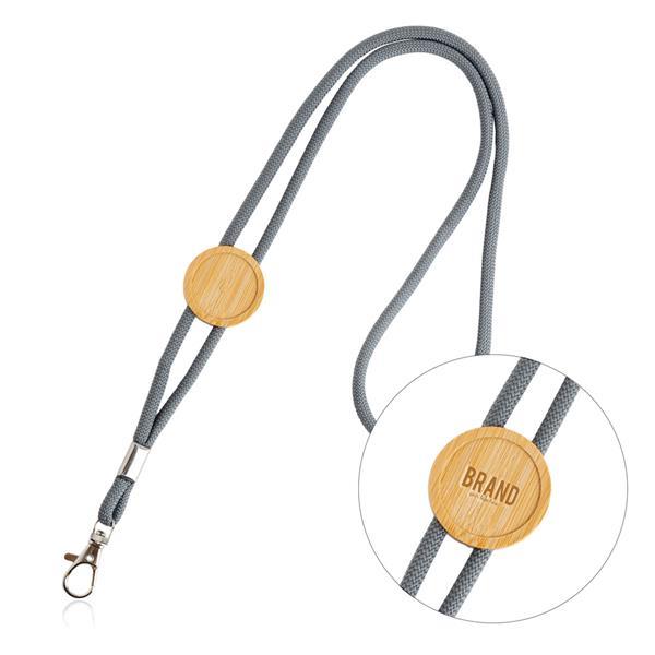 Smycz sznurkowa z bambusowym detalem regulującym, świetnie nadaje się pod doming. Dodaj swoje logo, slogan lub unikalny projekt, aby stworzyć wyjątkowy produkt odzwierciedlający tożsamość Twojej marki Rozmiar: 45 x 2 x 0 cm DO (doming do 6 cm2): o2,5 L2 (grawer laserowy): o2,5 Kolor: Light grey