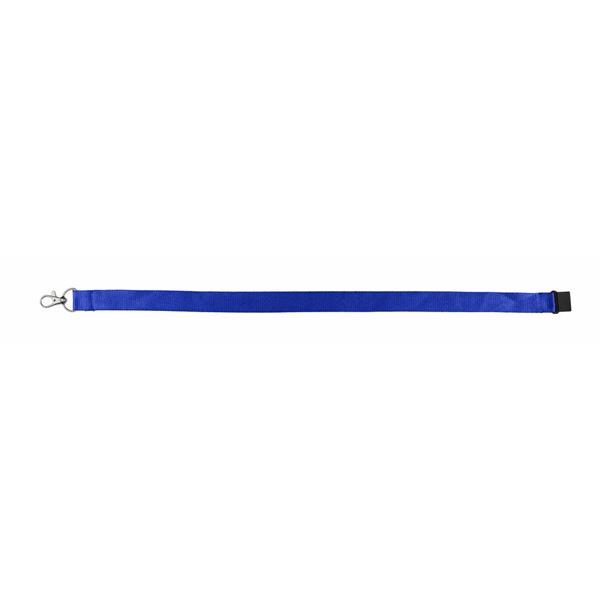 Smycz reklamowa, posiada rozpinany zatrzask bezpieczeństwa zapobiegający zaciśnięciu smyczy na szyi