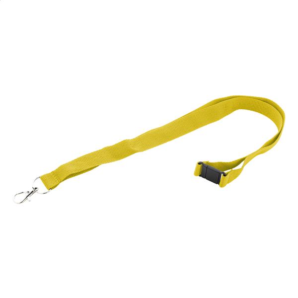 Smycz poliestrowa RPET z metalowym karabińczykiem i klamrą bezpieczeństwa.