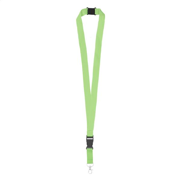 Smycz poliestrowa RPET z odpinanym metalowym karabińczykiem i klamrą bezpieczeństwa.
