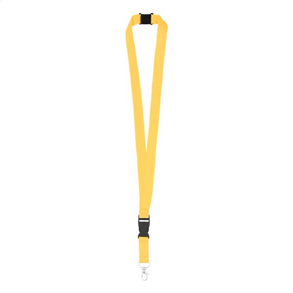Smycz poliestrowa RPET z odpinanym metalowym karabińczykiem i klamrą bezpieczeństwa.
