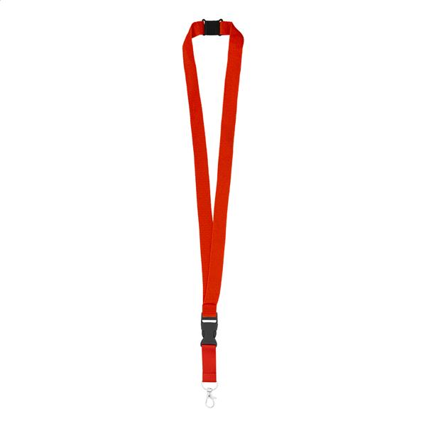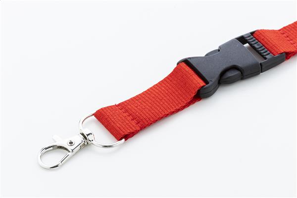 Smycz poliestrowa RPET z odpinanym metalowym karabińczykiem i klamrą bezpieczeństwa.