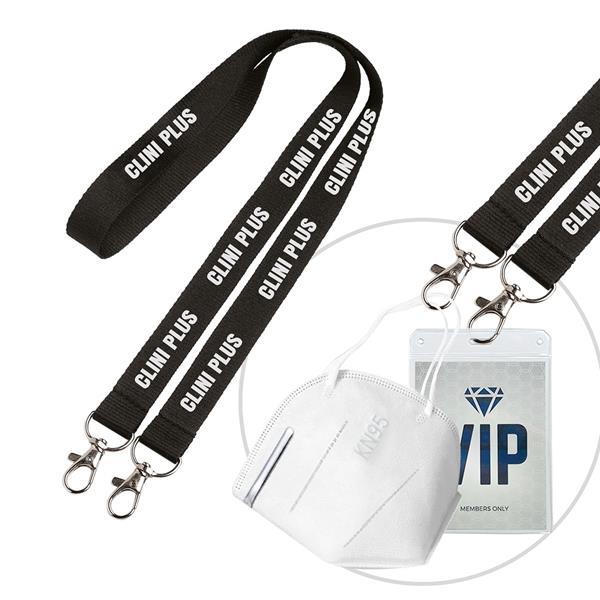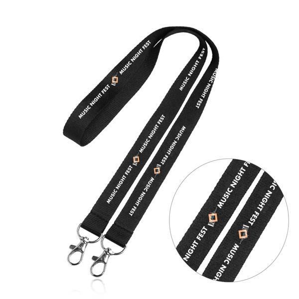 Poliestrowa smycz z 2 karabińczykkami. Rozmiar: 45 x 2 cm S1 (sitodruk): 20 x 1 Kolor: Czarny
