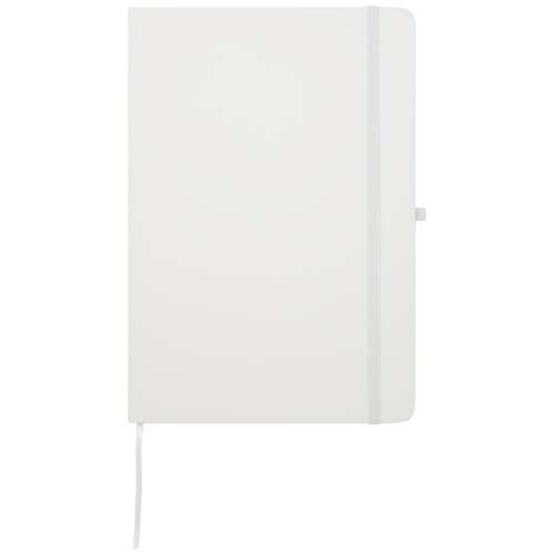 Notatnik Spectrum Plus w formacie A5 z twardą okładką i zaokrąglonymi rogami to nie tylko niezbędny element wyposażenia biura, ale także świetna okazja do promocji marki. Tekturowy notatnik ma miękką okładkę i 80 liniowanych, kremowych kartek o gramaturze 70 g/m2. Jest idealny do zapisywania szybkich pomysłów lub dłuższych notatek. Notatnik jest wyposażony w szlufkę na długopis, elastyczne zamknięcie, wstążkową zakładkę i harmonijkową kieszonkę.