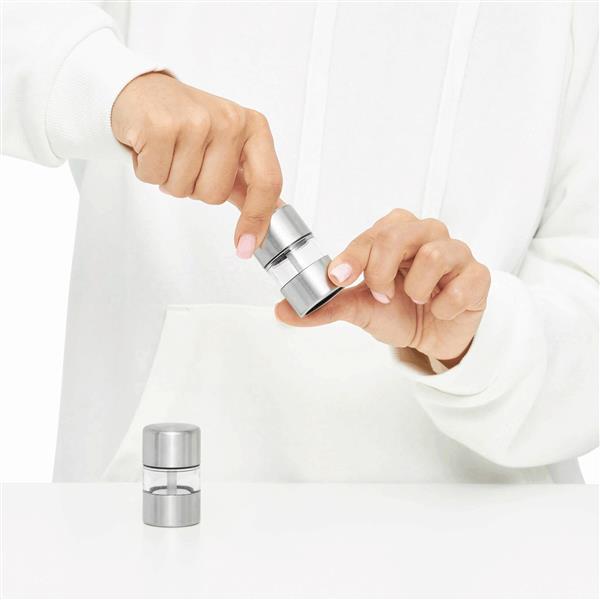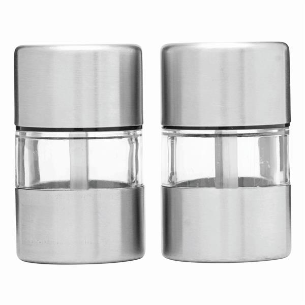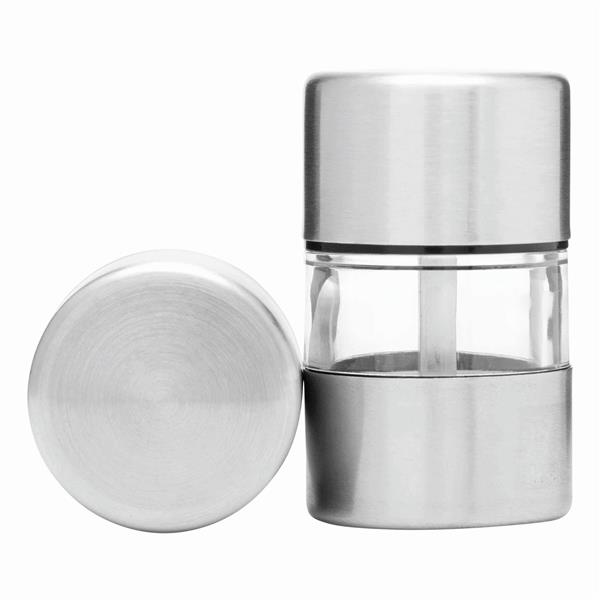 Zestaw do soli i pieprzu SPICE FLAVOR ze stali nierdzewnej, z transparentnym okienkiem, posiada ceramiczny młynek i mechanizm obrotowy, pakowany w transparentne pudełko.