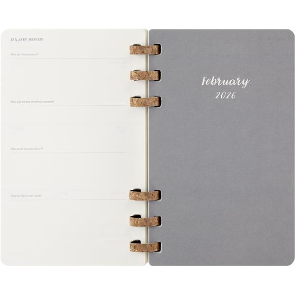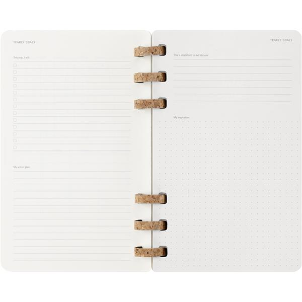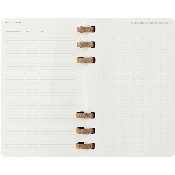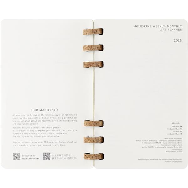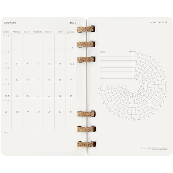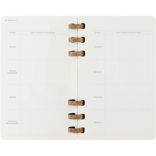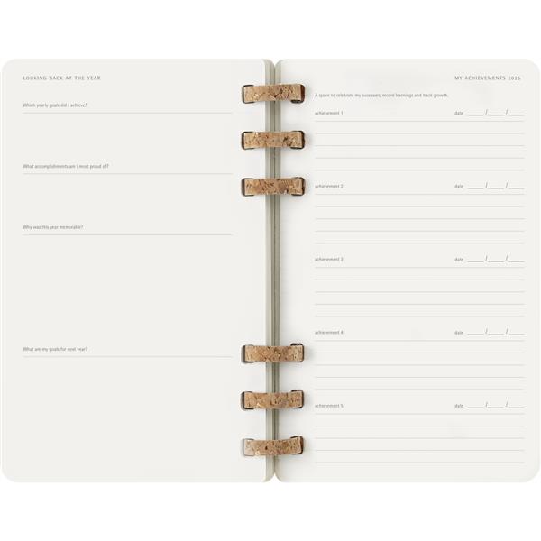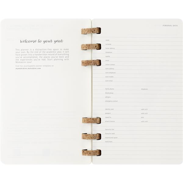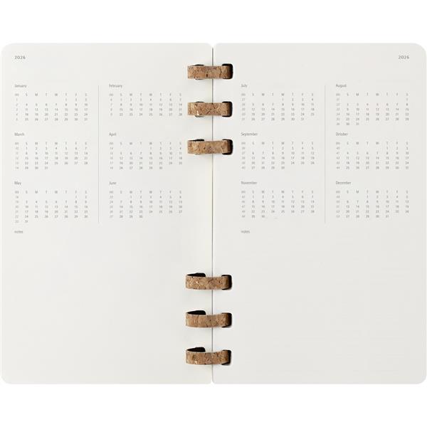 Spiralny duży (ok. A5, large) kalendarz MOLESKINE, miękka okładka, układ miesięczny oraz tygodniowy (200 str.), elastyczna opaska do zamykania