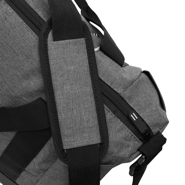 Torba sportowa SPLIT GYM z przestronną komorą główną i wewnętrzną kieszenią z zamkiem błyskawicznym. Przednia kieszeń na zamek błyskawiczny, kieszeń z siatki po jednej stronie, kieszeń wsuwana po drugiej stronie, regulowany pasek na ramię z poduszką.