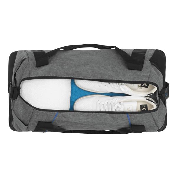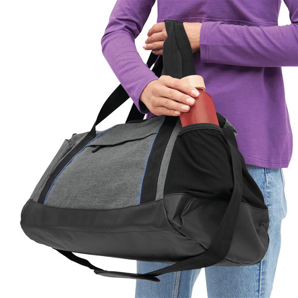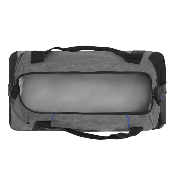 Torba sportowa SPLIT GYM z przestronną komorą główną i wewnętrzną kieszenią z zamkiem błyskawicznym. Przednia kieszeń na zamek błyskawiczny, kieszeń z siatki po jednej stronie, kieszeń wsuwana po drugiej stronie, regulowany pasek na ramię z poduszką.