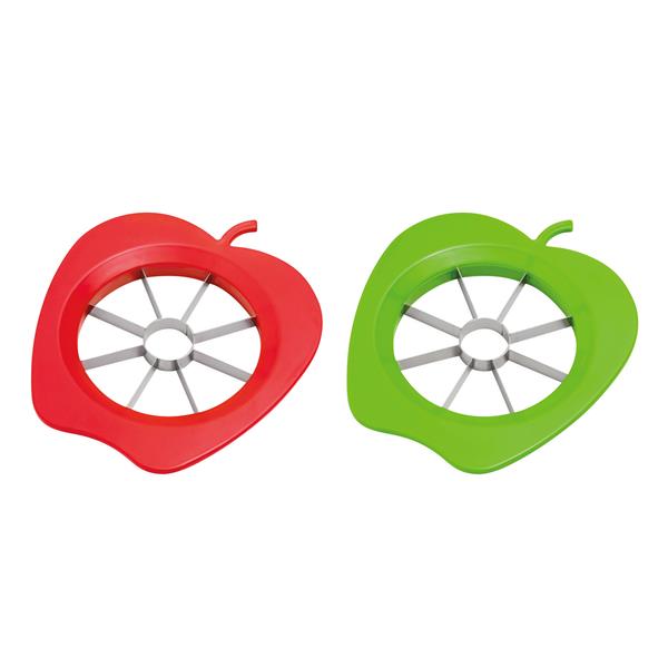 Nóż do jabłek SPLIT z plastikowym uchwytem w kształcie jabłka i ostrzami ze stali nierdzewnej.
