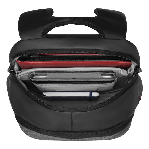 Plecak SPLIT z zamykaną na zamek kieszenią z przodu, z 2 zamykanymi komorami głównymi: pierwsza z wyściełaną kieszenią na laptopa oraz wsuwaną kieszonką, druga z małym organizatorem. Z rączką do przenoszenia oraz z wyściełanymi, wygodnymi plecami i szelkami.