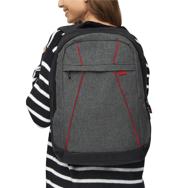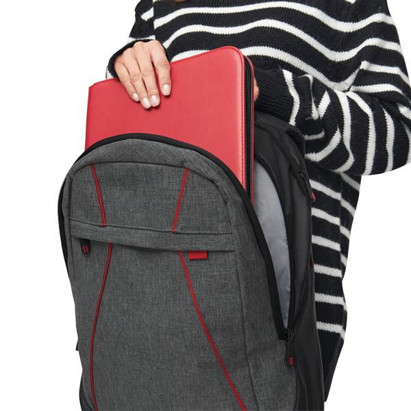 Plecak SPLIT z zamykaną na zamek kieszenią z przodu, z 2 zamykanymi komorami głównymi: pierwsza z wyściełaną kieszenią na laptopa oraz wsuwaną kieszonką, druga z małym organizatorem. Z rączką do przenoszenia oraz z wyściełanymi, wygodnymi plecami i szelkami. Materiał: 600D/210T Poliester/PVC Kolor: czerwony, szary Tagi: plecaki,bagaż