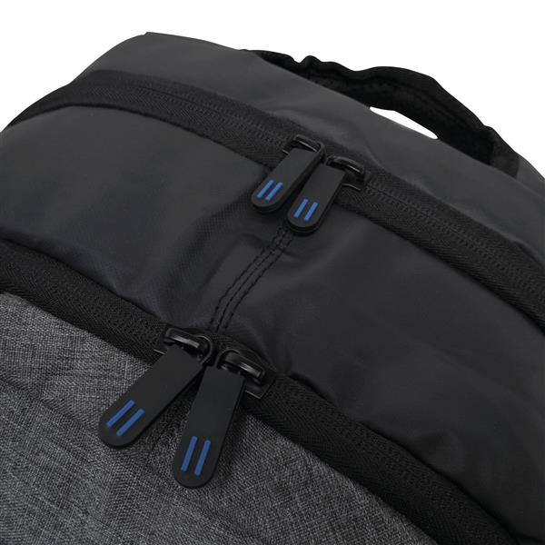 Plecak SPLIT z zamykaną na zamek kieszenią z przodu, z 2 zamykanymi komorami głównymi: pierwsza z wyściełaną kieszenią na laptopa oraz wsuwaną kieszonką, druga z małym organizatorem. Z rączką do przenoszenia oraz z wyściełanymi, wygodnymi plecami i szelkami. Materiał: 600D/210T Poliester/PVC Kolor: niebieski, szary Tagi: plecaki,bagaż
