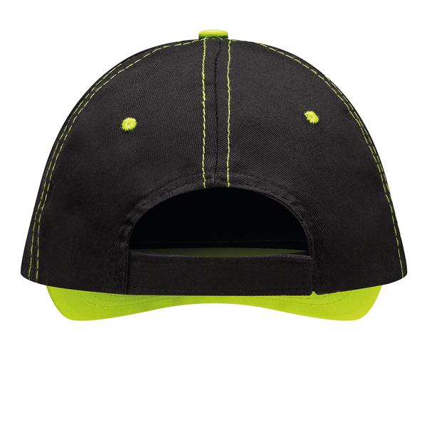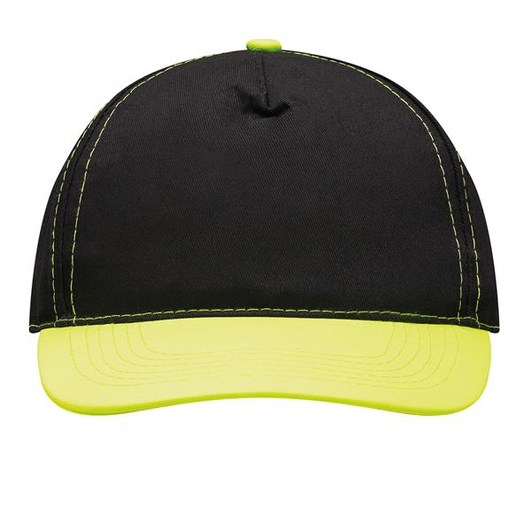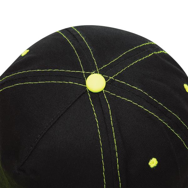 5 segmentowa czapka baseballowa SPORTSMAN. Wzmocniony przedni segment doskonały na nadruk, daszek, 4 haftowane otwory wentylacyjne, szwy i guzik w neonowych kolorach, rozmiar regulowany zapięciem na rzep z tyłu.
