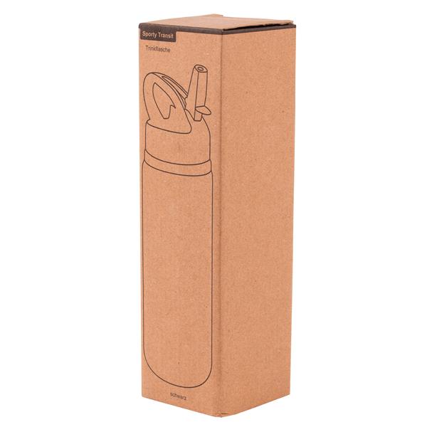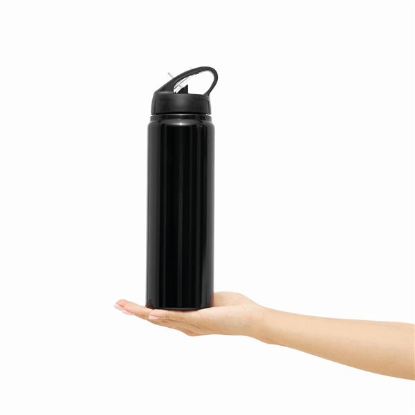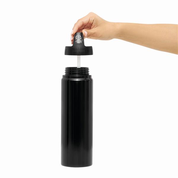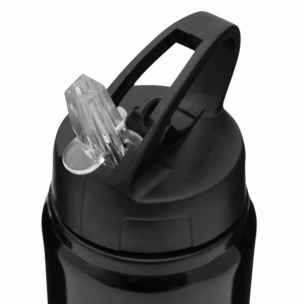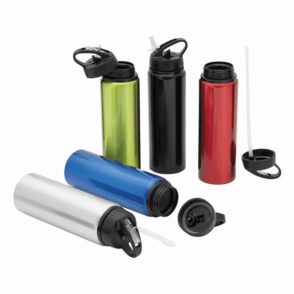Aluminiowa butelka do picia SPORTY TRANSIT: rozkładany otwór do picia, odłączana słomka zamocowana na pokrywie, z uchwytem, pojemność ok. 800 ml