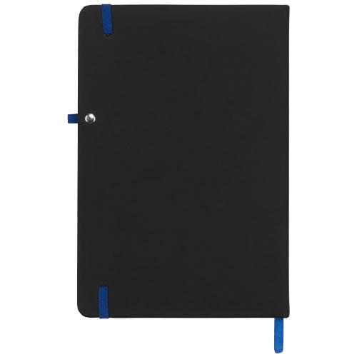Notes Noir ma miękką, gładką i miękką okładkę z poliuretanu, dzięki czemu jest niezwykle przyjemna w dotyku. Każdy notes ma kolorowy pasek do zamykania, pętelkę na długopis i zakładkę ze wstążki. 96 kremowych kartek w linie (gramatura 70 g/m2).