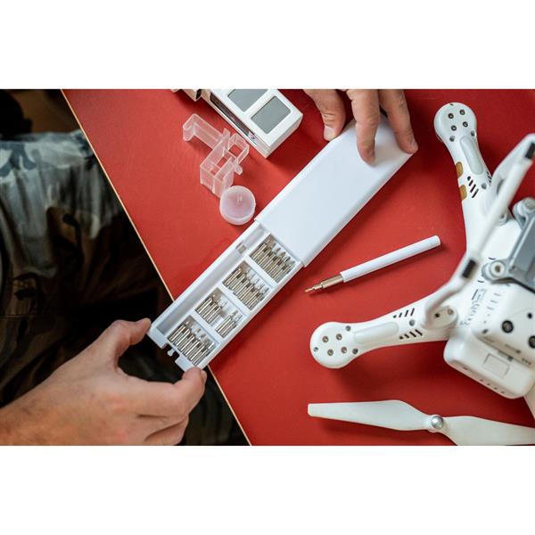 Śrubokręt, zestaw 24 końcówek w magnetycznym pudełku z otwarciem typu push open/close, z magnesem w rączce do przytrzymania końcówek